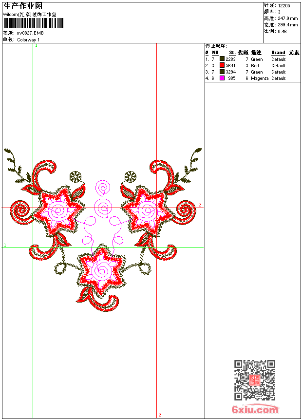 - emb花版参数: 大小:132.00 KB / 尺寸:299*248[毫米] / 针数:12205针 / 线色:3 / 格式:emb / 版本:9