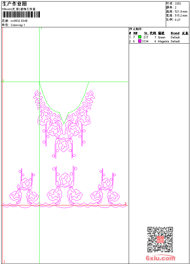- emb花版参数: 大小:36.00 KB / 尺寸:515*522[毫米] / 针数:3353针 / 线色:2 / 格式:emb / 版本:9