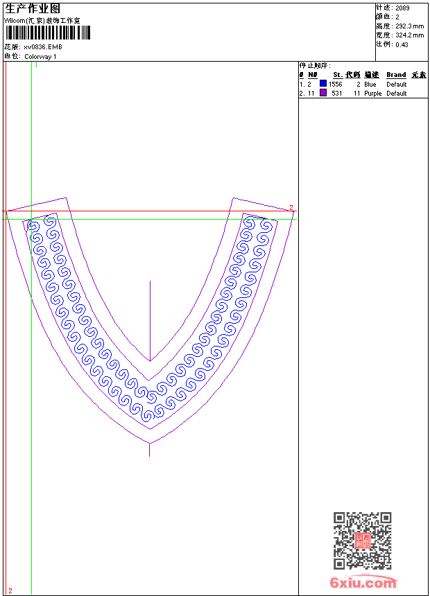 - emb花版参数: 大小:47.00 KB / 尺寸:324*292[毫米] / 针数:2089针 / 线色:2 / 格式:emb / 版本:9