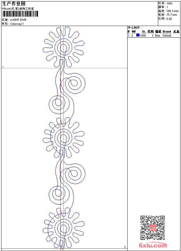- emb花版参数: 大小:20.50 KB / 尺寸:76*396[毫米] / 针数:1002针 / 线色:1 / 格式:emb / 版本:9