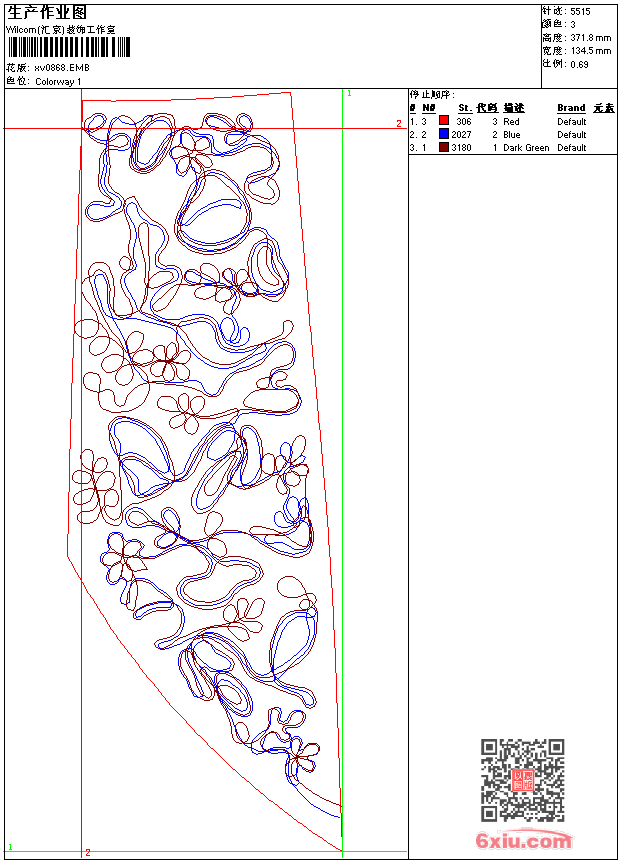 - emb花版参数: 大小:51.50 KB / 尺寸:135*372[毫米] / 针数:5515针 / 线色:3 / 格式:emb / 版本:9