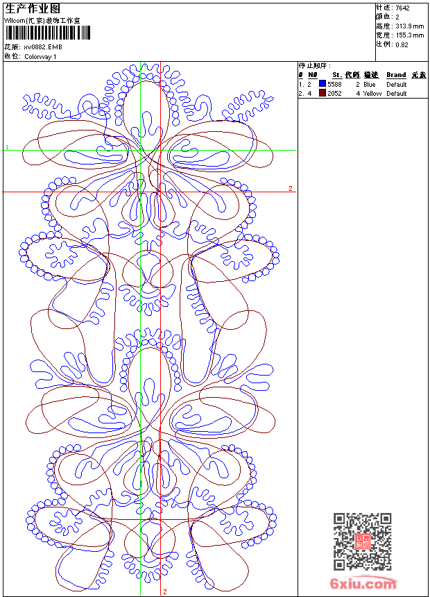 - emb花版参数: 大小:66.50 KB / 尺寸:155*314[毫米] / 针数:7642针 / 线色:2 / 格式:emb / 版本:9