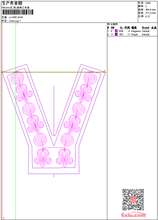 - emb花版参数: 大小:24.50 KB / 尺寸:371*405[毫米] / 针数:2888针 / 线色:2 / 格式:emb / 版本:9