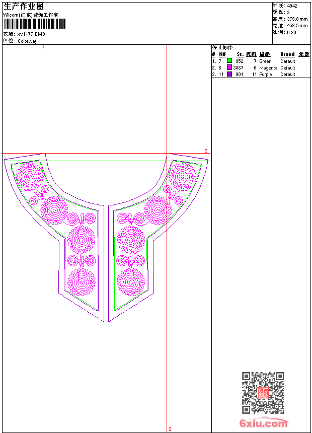 - emb花版参数: 大小:50.00 KB / 尺寸:459*380[毫米] / 针数:4942针 / 线色:3 / 格式:emb / 版本:9