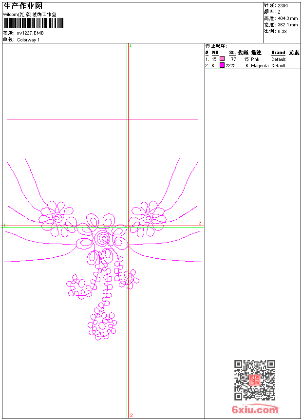 - emb花版参数: 大小:31.50 KB / 尺寸:362*404[毫米] / 针数:2304针 / 线色:2 / 格式:emb / 版本:9