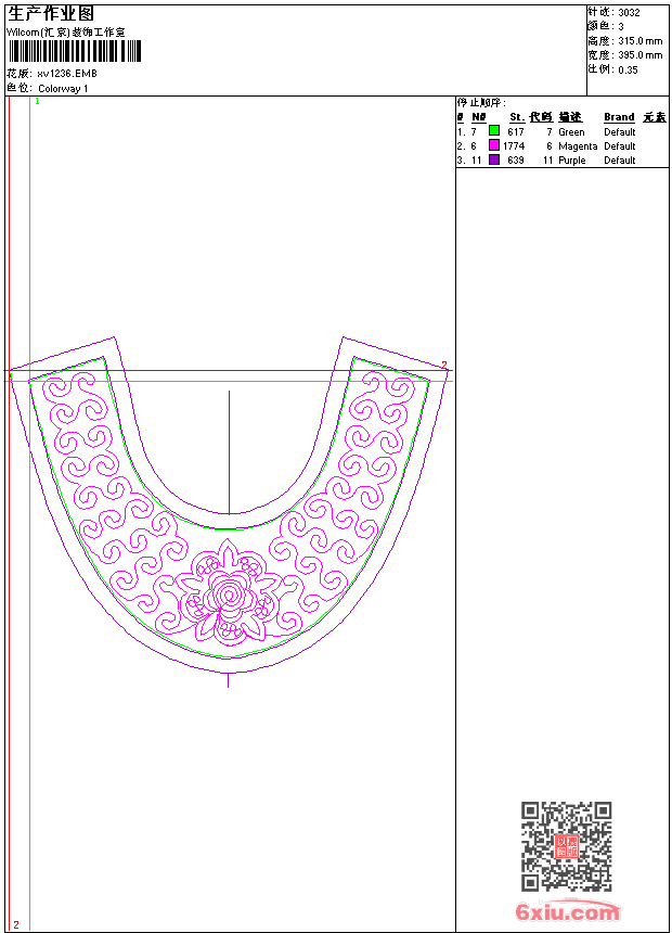- emb花版参数: 大小:40.00 KB / 尺寸:395*315[毫米] / 针数:3032针 / 线色:3 / 格式:emb / 版本:9