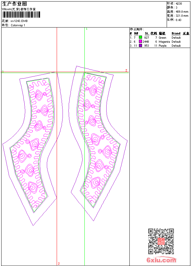 - emb花版参数: 大小:58.50 KB / 尺寸:321*410[毫米] / 针数:4230针 / 线色:3 / 格式:emb / 版本:9
