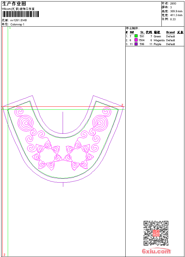 - emb花版参数: 大小:30.50 KB / 尺寸:411*310[毫米] / 针数:2693针 / 线色:3 / 格式:emb / 版本:9