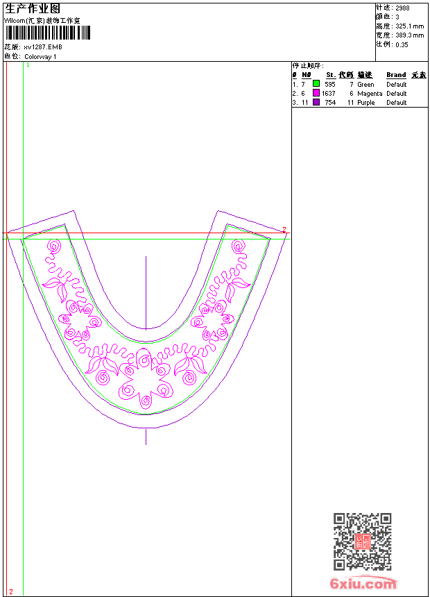 - emb花版参数: 大小:42.50 KB / 尺寸:389*325[毫米] / 针数:2988针 / 线色:3 / 格式:emb / 版本:9