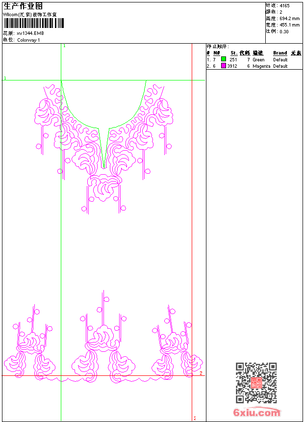 - emb花版参数: 大小:44.00 KB / 尺寸:455*694[毫米] / 针数:4165针 / 线色:2 / 格式:emb / 版本:9