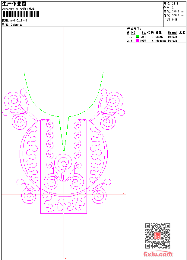 - emb花版参数: 大小:27.00 KB / 尺寸:301*349[毫米] / 针数:2218针 / 线色:2 / 格式:emb / 版本:9