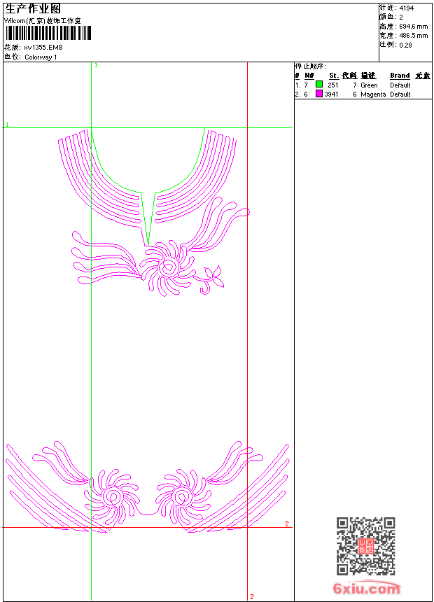 - emb花版参数: 大小:39.50 KB / 尺寸:486*695[毫米] / 针数:4194针 / 线色:2 / 格式:emb / 版本:9