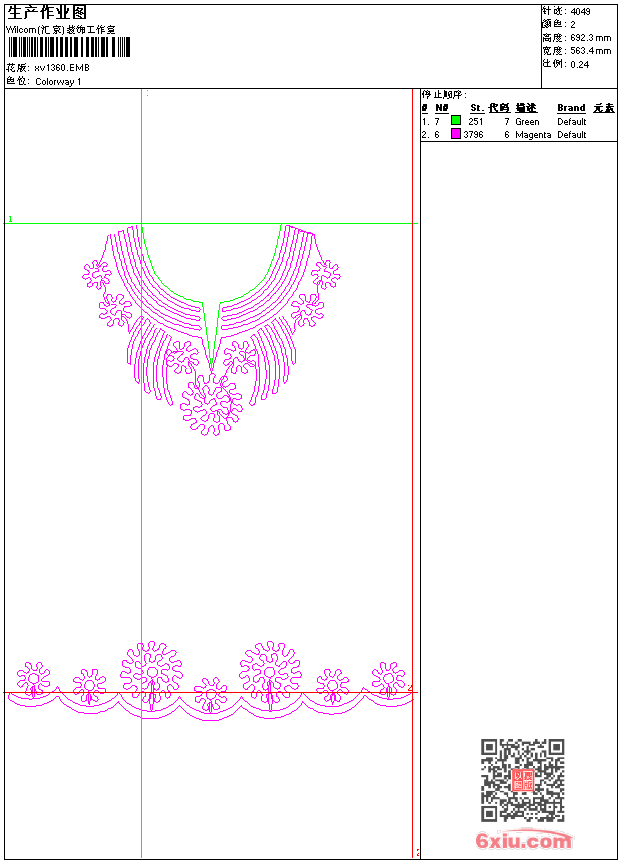 - emb花版参数: 大小:40.50 KB / 尺寸:563*692[毫米] / 针数:4049针 / 线色:2 / 格式:emb / 版本:9