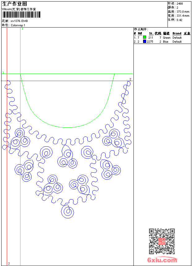 - emb花版参数: 大小:33.00 KB / 尺寸:331*373[毫米] / 针数:2488针 / 线色:2 / 格式:emb / 版本:9