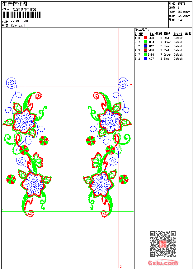 - emb花版参数: 大小:132.00 KB / 尺寸:329*354[毫米] / 针数:15879针 / 线色:3 / 格式:emb / 版本:9