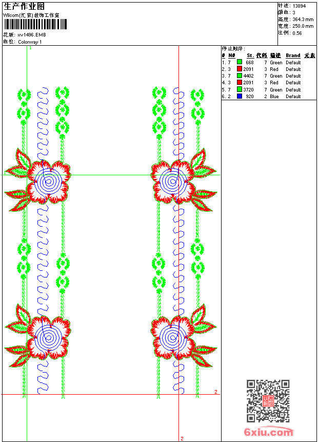 - emb花版参数: 大小:78.00 KB / 尺寸:250*364[毫米] / 针数:13894针 / 线色:3 / 格式:emb / 版本:9