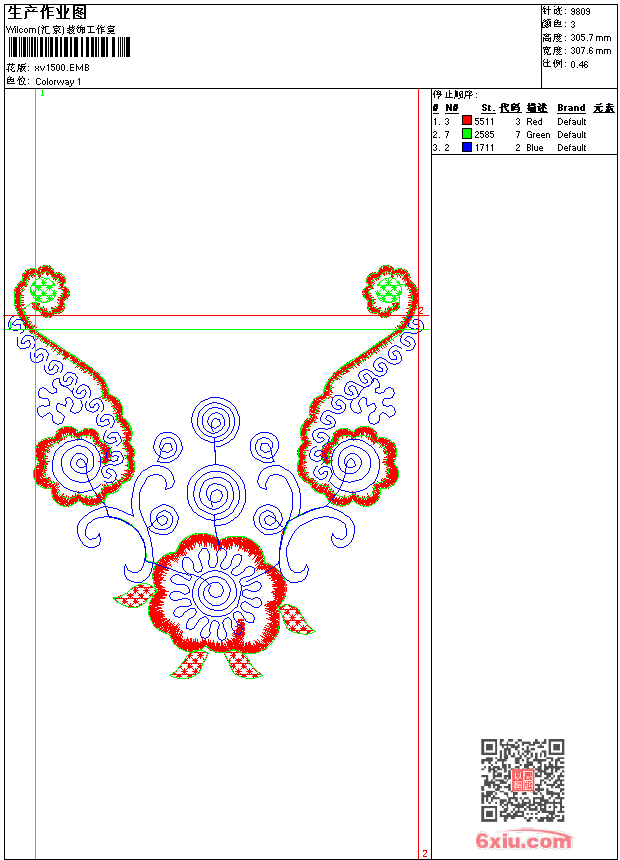 - emb花版参数: 大小:66.50 KB / 尺寸:308*306[毫米] / 针数:9809针 / 线色:3 / 格式:emb / 版本:9