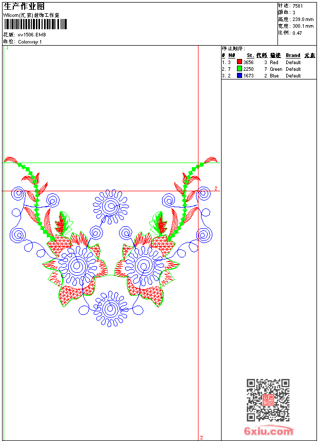 - emb花版参数: 大小:72.00 KB / 尺寸:300*239[毫米] / 针数:7581针 / 线色:3 / 格式:emb / 版本:9