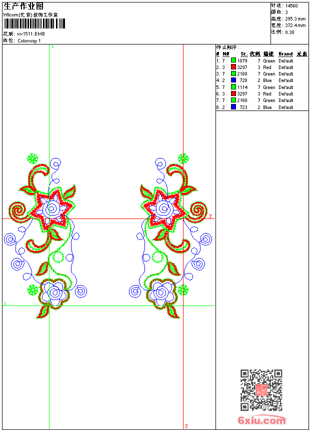 - emb花版参数: 大小:142.00 KB / 尺寸:372*295[毫米] / 针数:14560针 / 线色:3 / 格式:emb / 版本:9