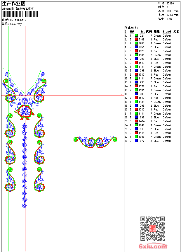 - emb花版参数: 大小:147.50 KB / 尺寸:822*990[毫米] / 针数:35360针 / 线色:3 / 格式:emb / 版本:9