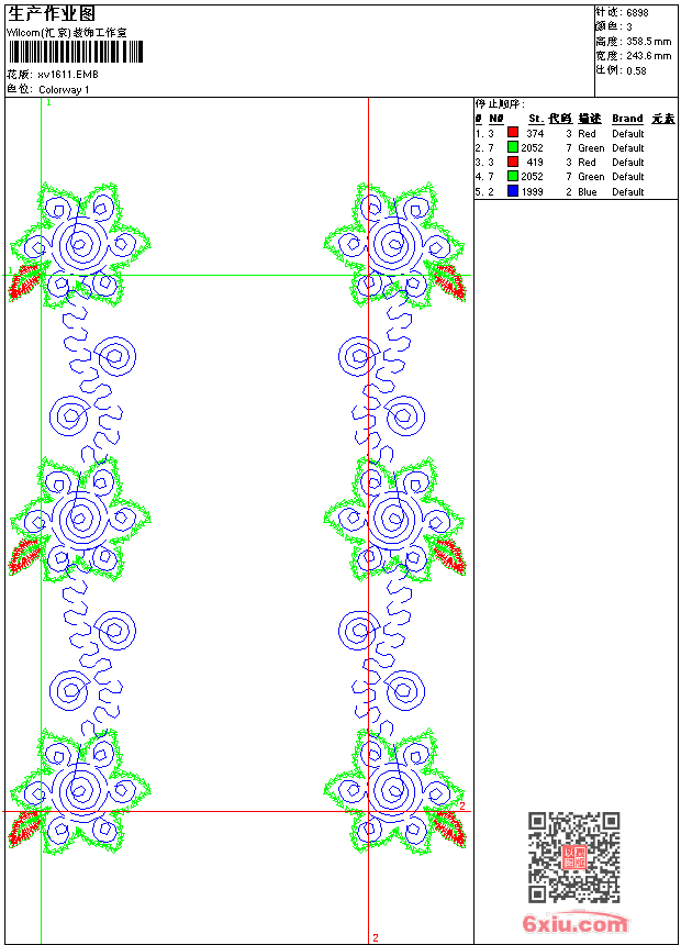 - emb花版参数: 大小:92.00 KB / 尺寸:244*359[毫米] / 针数:6898针 / 线色:3 / 格式:emb / 版本:9