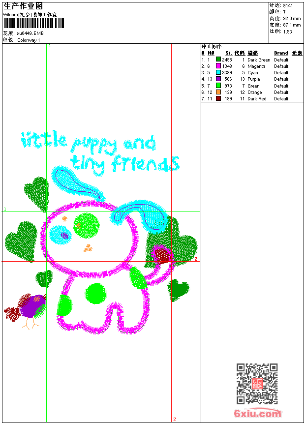 狗_卡通贴布 上传花版得乐绣币/现金 emb花版参数: 大小:69.50 KB / 尺寸:87*92[毫米] / 针数:9141针 / 线色:7 / 格式:emb / 版本:9 版带文件需绣花软件方可打开,可配色打印导出各种格式或直接上机绣。如无绣花软件可下载1:1模拟效果图。 PNG图片信息:大小:0.1(MB) /图宽*高:330x349(像素) emb下载 1:1图下载 收藏本图 关闭 相似花版: 鸟_卡通贴布 鸟_卡通贴布 俄罗斯套娃_卡通贴布 潜水艇_卡通贴布 狗_卡通贴布 狗_卡通贴布 猫_卡通贴布 狗_卡通贴布 狗_卡通贴布 大象_卡通贴布 熊_卡通贴布 俄罗斯套娃_卡通贴布 长颈鹿_卡通贴布 蝴蝶_卡通贴布 毛毛虫_卡通贴布 青蛙_卡通贴布 蝴蝶_卡通贴布 乌龟_卡通贴布 猫_卡通贴布 猫 长颈鹿 汽车_卡通贴布 上一个花样:恐龙_卡通贴布 下一个花样:鸟_卡通贴布