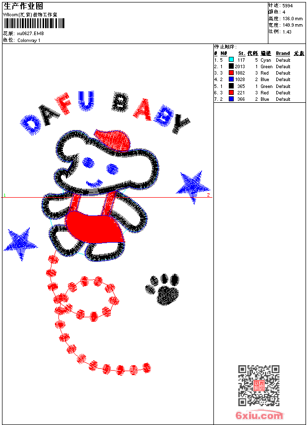 熊_卡通贴布 点此上传花版兑乐绣币/现金 emb花版参数: 大小:65.50 KB / 尺寸:150*136[毫米] / 针数:5994针 / 线色:4 / 格式:emb / 版本:9 版带文件需绣花软件方可打开,可配色打印导出各种格式或直接上机绣。如无绣花软件可下载1:1模拟效果图。 PNG图片信息:大小:0.1(MB) /图宽*高:568x515(像素) emb下载 1:1图下载 关闭 相似花版: 长颈鹿_卡通贴布 熊_卡通贴布 童花_卡通贴布 童花_卡通贴布 小鸡_卡通贴布 女孩_卡通贴布 兔_卡通贴布 鹿 珠片_卡通贴布 动漫_卡通贴布 女孩_卡通贴布 狗 多色珠片_卡通贴布 羊_卡通贴布 羊_卡通贴布 猫_卡通贴布 字母_卡通贴布 鸟_卡通贴布 大力水手_卡通贴布 狮子_卡通贴布 骑马 保罗 polo_卡通贴布 蝙蝠_卡通贴布 上一个花样:汽车_卡通贴布 下一个花样:长颈鹿_卡通贴布