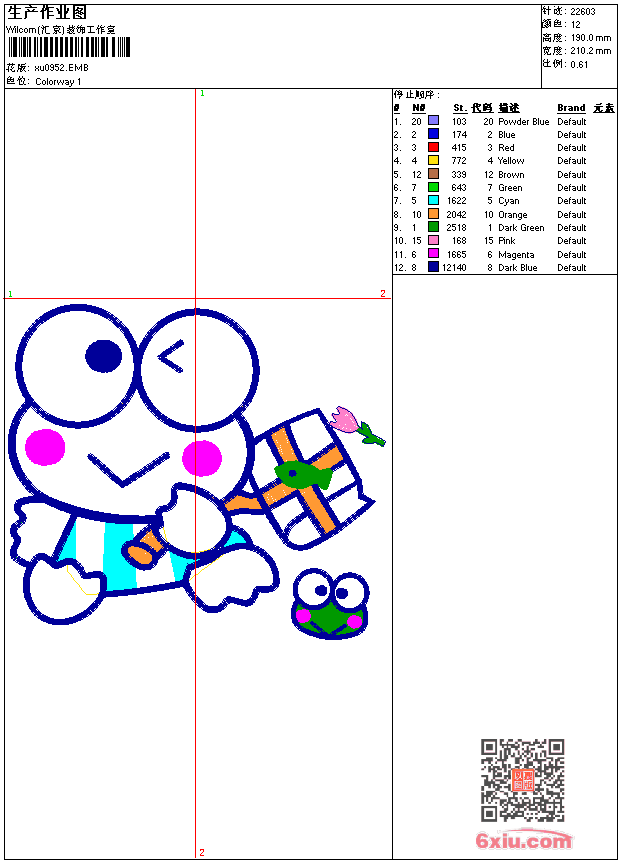 青蛙_卡通贴布 点此上传花版兑乐绣币/现金 emb花版参数: 大小:92.50 KB / 尺寸:210*190[毫米] / 针数:22603针 / 线色:12 / 格式:emb / 版本:9 版带文件需绣花软件方可打开,可配色打印导出各种格式或直接上机绣。如无绣花软件可下载1:1模拟效果图。 PNG图片信息:大小:0.4(MB) /图宽*高:796x719(像素) emb下载 1:1图下载 关闭 相似花版: 熊_卡通贴布 熊_卡通贴布 熊_卡通贴布 熊_卡通贴布 熊_卡通贴布 狗_卡通贴布 飞机_卡通贴布 狗_卡通贴布 狮子_卡通贴布 熊_卡通贴布 猴子_卡通贴布 牛_卡通贴布 米老鼠_卡通贴布 米老鼠_卡通贴布 米老鼠_卡通贴布 米老鼠_卡通贴布 米老鼠_卡通贴布 米老鼠_卡通贴布 动漫_卡通贴布 熊_卡通贴布 上一个花样:青蛙_卡通贴布 下一个花样:熊_卡通贴布