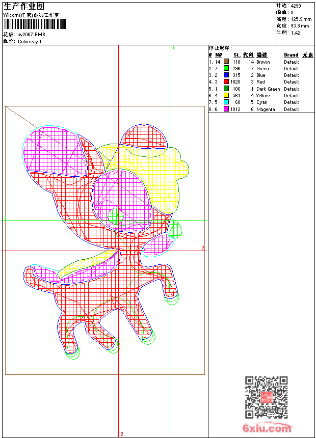 - 版带文件需绣花软件方可打开,可配色打印导出各种格式或直接上机绣。如无绣花软件可下载1:1模拟效果图。