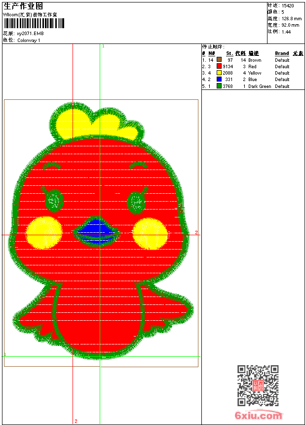 - emb花版参数: 大小:59.00 KB / 尺寸:92*127[毫米] / 针数:15420针 / 线色:5 / 格式:emb / 版本:9