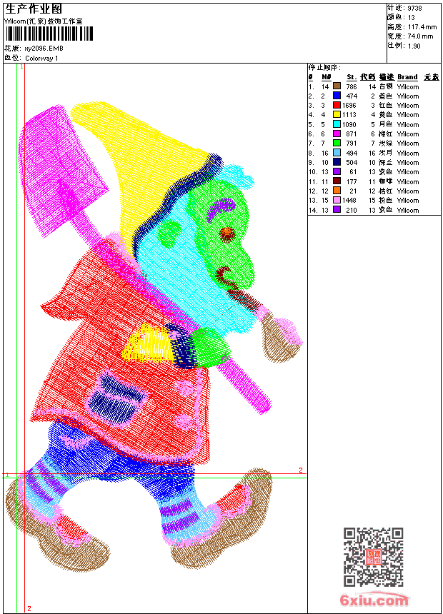 - emb花版参数: 大小:68.00 KB / 尺寸:74*117[毫米] / 针数:9738针 / 线色:13 / 格式:emb / 版本:9