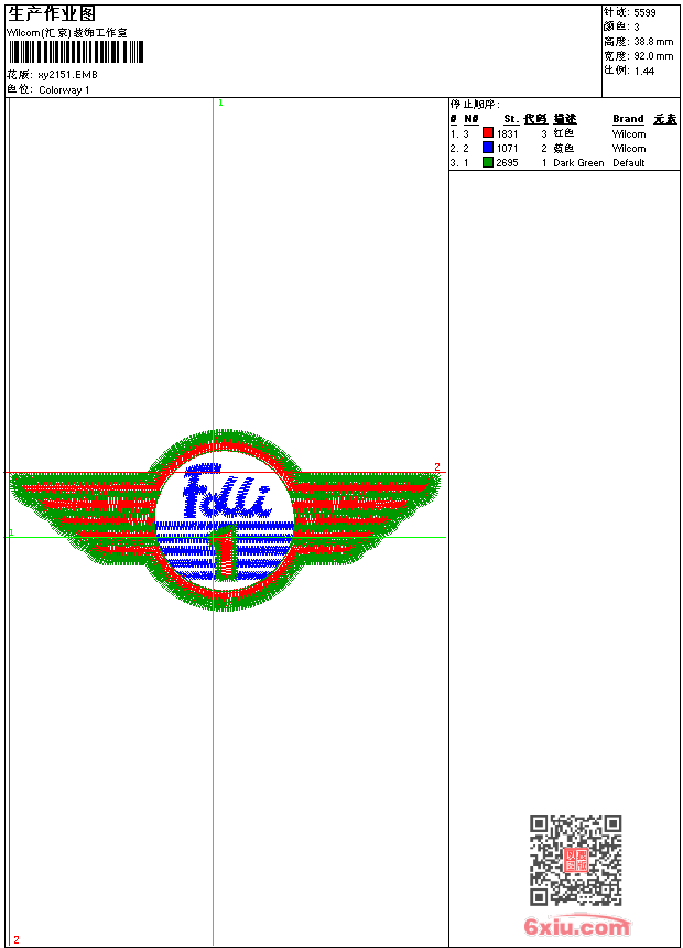 - 版带文件需绣花软件方可打开,可配色打印导出各种格式或直接上机绣。如无绣花软件可下载1:1模拟效果图。