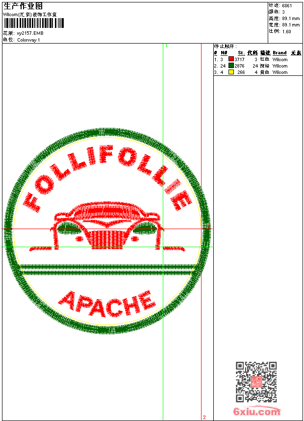 - emb花版参数: 大小:41.50 KB / 尺寸:89*89[毫米] / 针数:6861针 / 线色:3 / 格式:emb / 版本:9