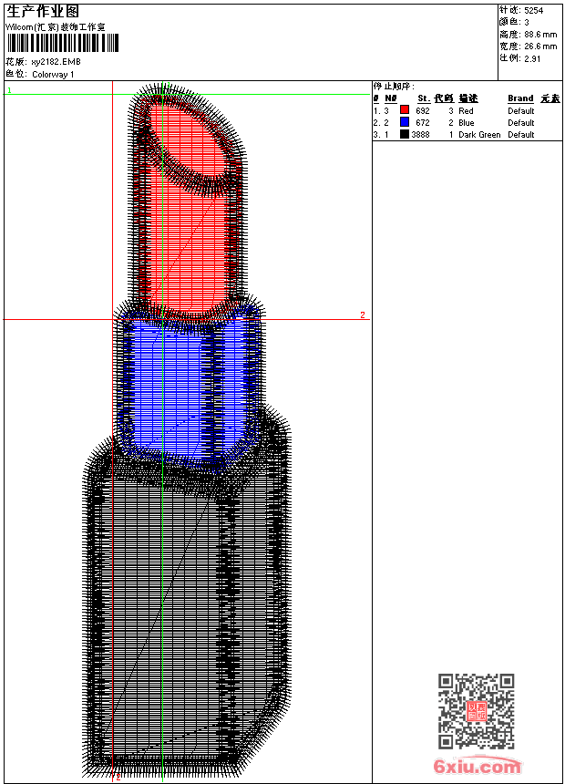 - emb花版参数: 大小:25.50 KB / 尺寸:27*89[毫米] / 针数:5254针 / 线色:3 / 格式:emb / 版本:9