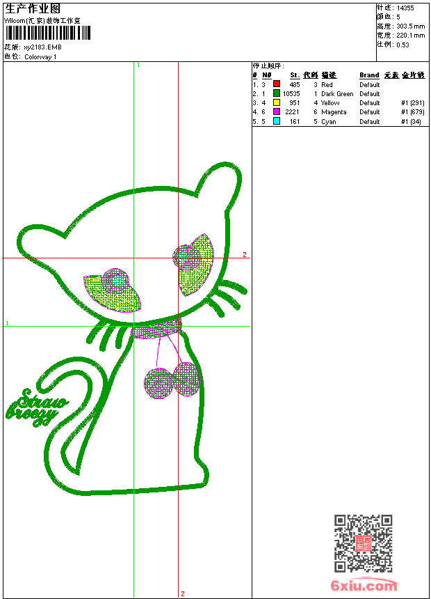 - 版带文件需绣花软件方可打开,可配色打印导出各种格式或直接上机绣。如无绣花软件可下载1:1模拟效果图。