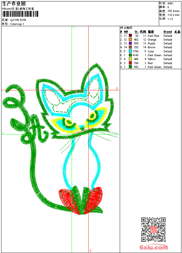 - emb花版参数: 大小:80.50 KB / 尺寸:118*155[毫米] / 针数:9491针 / 线色:8 / 格式:emb / 版本:9