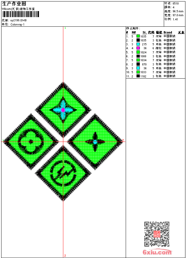 - 版带文件需绣花软件方可打开,可配色打印导出各种格式或直接上机绣。如无绣花软件可下载1:1模拟效果图。