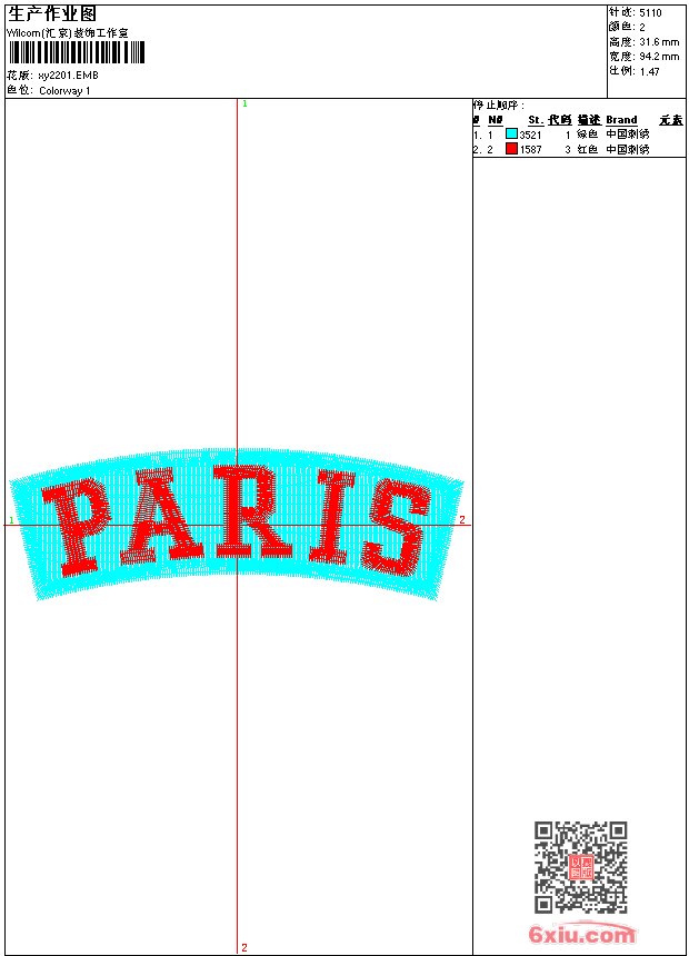 - emb花版参数: 大小:28.00 KB / 尺寸:94*32[毫米] / 针数:5110针 / 线色:2 / 格式:emb / 版本:9