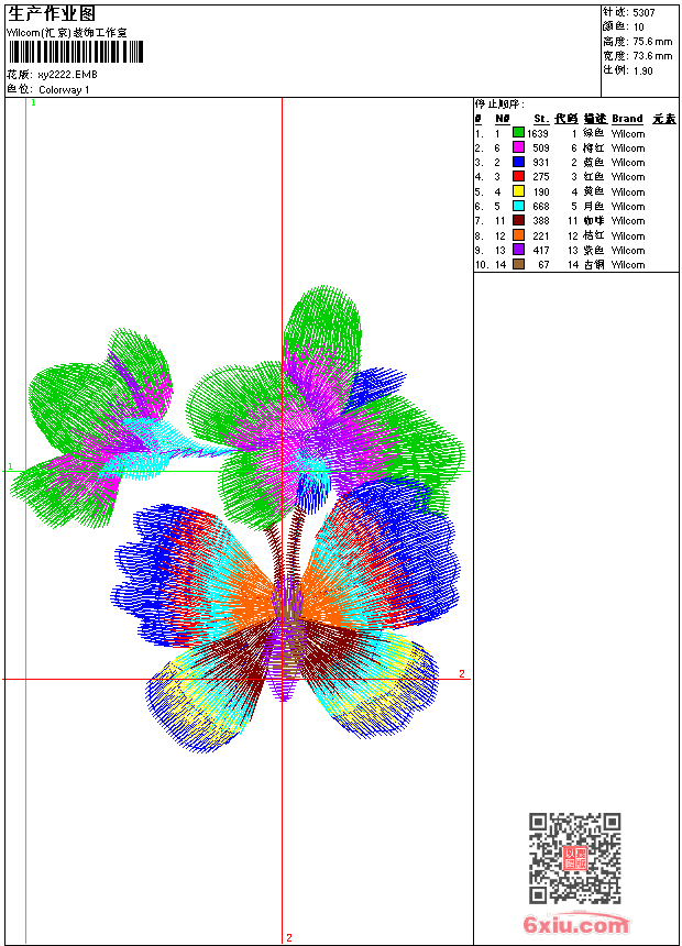 - emb花版参数: 大小:52.00 KB / 尺寸:74*76[毫米] / 针数:5307针 / 线色:10 / 格式:emb / 版本:9