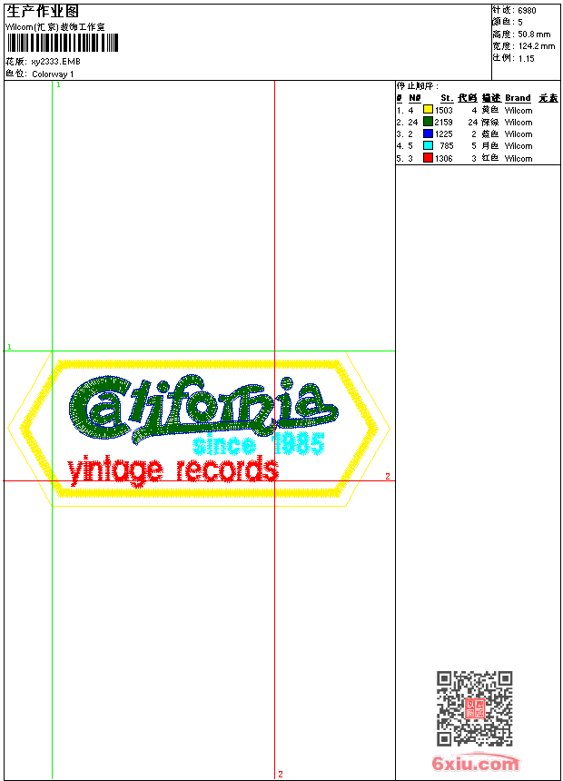 california 点此上传花版兑乐绣币/现金 emb花版参数: 大小:50.00 KB / 尺寸:124*51[毫米] / 针数:6980针 / 线色:5 / 格式:emb / 版本:9 版带文件需绣花软件方可打开,可配色打印导出各种格式或直接上机绣。如无绣花软件可下载1:1模拟效果图。 PNG图片信息:大小:0.1(MB) /图宽*高:470x193(像素) emb下载 1:1图下载 关闭 相似花版: 靓花 人物 简笔 素描 爱 靓铧 蝴蝶 直升机 蝴蝶 裙衣摆靓花 云 曲线 简单花 靓花 简单花 后背 靓花 后背 靓花 领 乱绣 乱绣 前胸 简单花 靓花 靓花 花条 衣角靓花 上一个花样:蝴蝶 花 下一个花样:靓花
