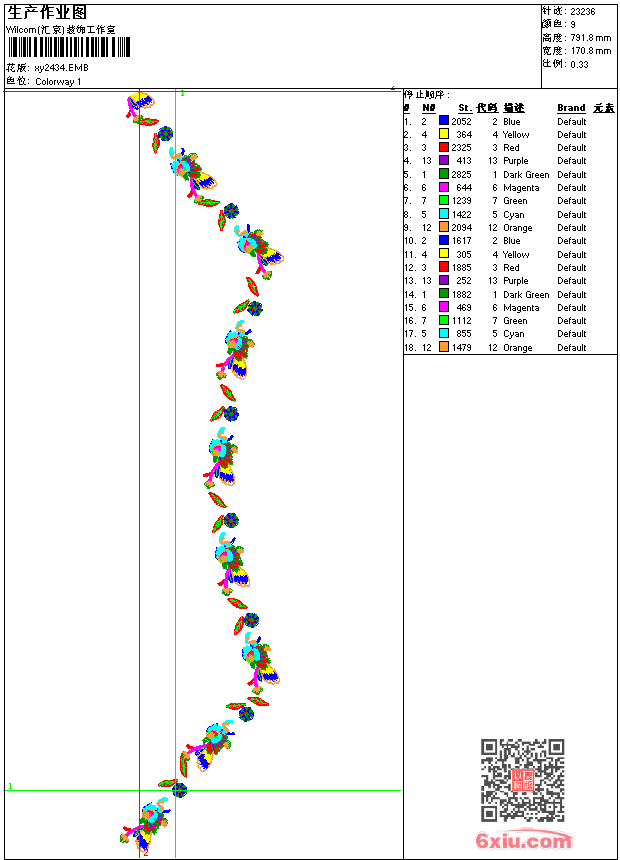 条码 点此上传花版兑乐绣币/现金 emb花版参数: 大小:197.00 KB / 尺寸:171*792[毫米] / 针数:23236针 / 线色:9 / 格式:emb / 版本:9 版带文件需绣花软件方可打开,可配色打印导出各种格式或直接上机绣。如无绣花软件可下载1:1模拟效果图。 PNG图片信息:大小:0.5(MB) /图宽*高:646x2996(像素) emb下载 1:1图下载 关闭 相似花版: 胸 曲线 裙摆花 裙摆花 简单花 虎头 网布 水溶 朵花 网布 水溶 朵花 蝴蝶 猫头鹰 树林 风景 简单花 简单花 简单花 珠片 笑脸 条码 领 领 领 领 领 上一个花样:绳绣 领 下一个花样:胸 曲线