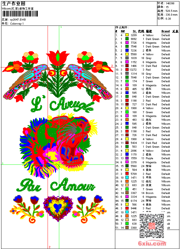 虎头 鸟 背 点此上传花版兑乐绣币/现金 emb花版参数: 大小:695.50 KB / 尺寸:336*528[毫米] / 针数:140398针 / 线色:15 / 格式:emb / 版本:9 版带文件需绣花软件方可打开,可配色打印导出各种格式或直接上机绣。如无绣花软件可下载1:1模拟效果图。 PNG图片信息:大小:2.8(MB) /图宽*高:1271x1999(像素) emb下载 1:1图下载 关闭 相似花版: 树花 凤凰 花 旗袍 凤凰 花 旗袍 凤凰 花 旗袍 靓花 靓花 鹰 鹿 花 靓花 凤凰 花 凤凰 花 领 靓花 鲤鱼 鲤鱼 鲤鱼 靓花 靓花 靓花 靓花 鸟 靓花 上一个花样:鸟 下一个花样:树花