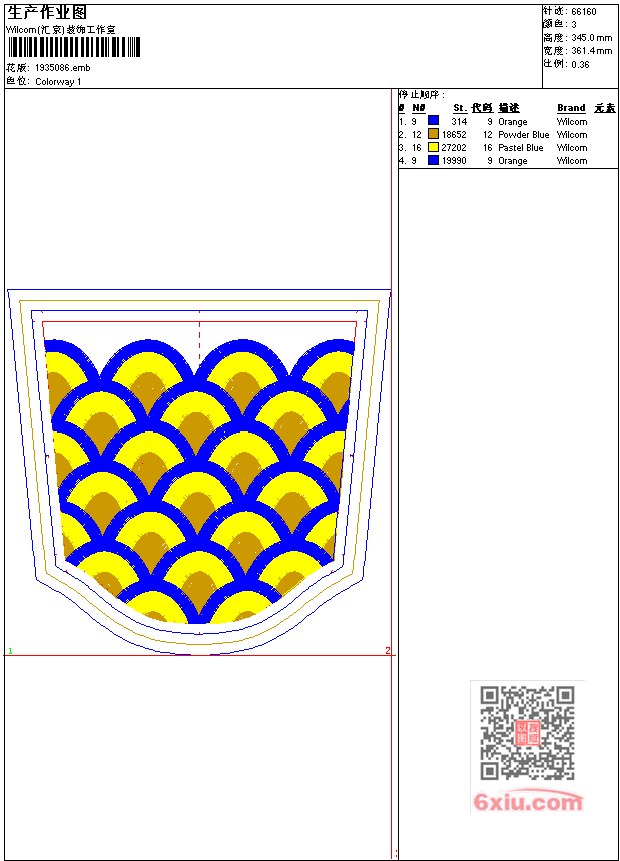 - emb花版参数: 大小:224.50 KB / 尺寸:361*345[毫米] / 针数:66160针 / 线色:3 / 格式:emb / 版本:9