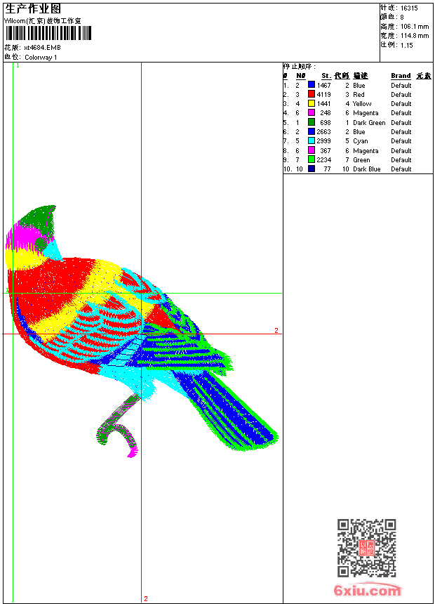 小鸟 点此上传花版兑乐绣币/现金 emb花版参数: 大小:89.00 KB / 尺寸:115*106[毫米] / 针数:16315针 / 线色:8 / 格式:emb / 版本:9 版带文件需绣花软件方可打开,可配色打印导出各种格式或直接上机绣。如无绣花软件可下载1:1模拟效果图。 PNG图片信息:大小:0.2(MB) /图宽*高:435x402(像素) emb下载 1:1图下载 关闭 相似花版: 亮片女孩 公鸡 大嘴猴 荷花 凤凰 凤凰 蜻蜓亮片 靓花 靓中国风民族风 亮片梅花鹿 靓花 龙争虎斗之豹子蛇 孔雀 亮片笑脸 靓花朵 小鸟 老鹰 老鹰 毛巾绣卡通 翅膀 上一个花样:小鸟 下一个花样:亮片女孩