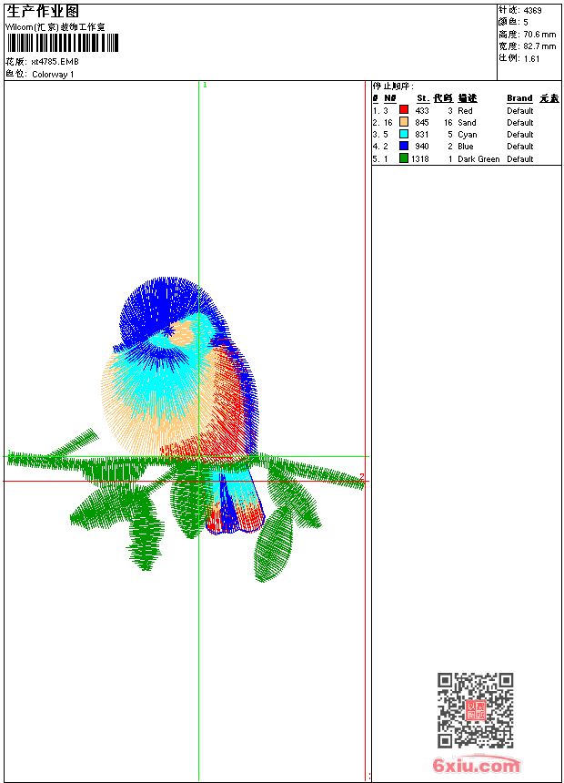 小鸟 点此上传花版兑乐绣币/现金 emb花版参数: 大小:36.00 KB / 尺寸:83*71[毫米] / 针数:4369针 / 线色:5 / 格式:emb / 版本:9 版带文件需绣花软件方可打开,可配色打印导出各种格式或直接上机绣。如无绣花软件可下载1:1模拟效果图。 PNG图片信息:大小:0.1(MB) /图宽*高:313x268(像素) emb下载 1:1图下载 关闭 相似花版: 小鸟 大公鸡亮片 靓花 鸟格子花朵 鸽子鸟 荡秋千的女孩 靓花 靓花朵 老鹰鸟 靓花朵 简单花朵 孔雀 小狗 蜻蜓 漂亮风景椰树 亮片小狗 靓花朵 毛巾绣瓢虫亮片 抽象的猫 卡通动物大全猫狗鸟 上一个花样:小鸟 下一个花样:小鸟