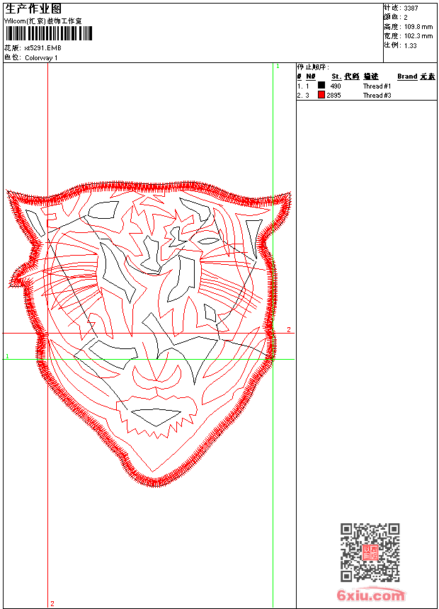老虎头 点此上传花版兑乐绣币/现金 emb花版参数: 大小:38.00 KB / 尺寸:102*110[毫米] / 针数:3387针 / 线色:2 / 格式:emb / 版本:9 版带文件需绣花软件方可打开,可配色打印导出各种格式或直接上机绣。如无绣花软件可下载1:1模拟效果图。 PNG图片信息:大小:0.1(MB) /图宽*高:387x416(像素) emb下载 1:1图下载 关闭 相似花版: 靓花 靓花 十字绣条码 老虎 斑马 鱼跃龙门 鱼跃龙门 鱼跃龙门 靓花 靓花 靓花 靓花朵 斑马 靓花 领子 靓花 靓花 多色水溶衣领 中国风中国结吉祥图案 靓花和大鲤鱼 上一个花样:卡通森普森一家 下一个花样:靓花