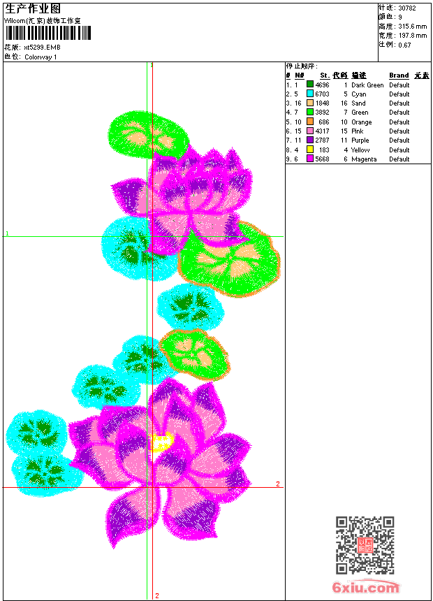 荷花 点此上传花版兑乐绣币/现金 emb花版参数: 大小:196.00 KB / 尺寸:198*316[毫米] / 针数:30782针 / 线色:9 / 格式:emb / 版本:9 版带文件需绣花软件方可打开,可配色打印导出各种格式或直接上机绣。如无绣花软件可下载1:1模拟效果图。 PNG图片信息:大小:1.0(MB) /图宽*高:749x1194(像素) emb下载 1:1图下载 关闭 相似花版: 靓花 靓花 靓花 靓花 老鹰 抽象的线条 卡通森普森一家 老虎头 靓花 靓花 十字绣条码 老虎 斑马 鱼跃龙门 鱼跃龙门 鱼跃龙门 靓花 靓花 靓花 靓花朵 上一个花样:靓花 下一个花样:靓花