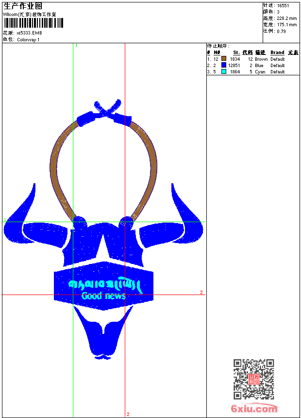 牛头 点此上传花版兑乐绣币/现金 emb花版参数: 大小:60.50 KB / 尺寸:175*228[毫米] / 针数:16551针 / 线色:3 / 格式:emb / 版本:9 版带文件需绣花软件方可打开,可配色打印导出各种格式或直接上机绣。如无绣花软件可下载1:1模拟效果图。 PNG图片信息:大小:0.3(MB) /图宽*高:663x863(像素) emb下载 1:1图下载 关闭 相似花版: 手指 手指 小鸟 靓花 连衣裙 抽象的满幅雕孔后背 蝴蝶 小和尚荷花中国风旗袍 靓花 领子 衣领 领子 靓花 鸟语花香 梅花 中国风花盆荷花 领子 绵羊剪纸中国风 骷髅 老鹰 上一个花样:佛绣 下一个花样:手指