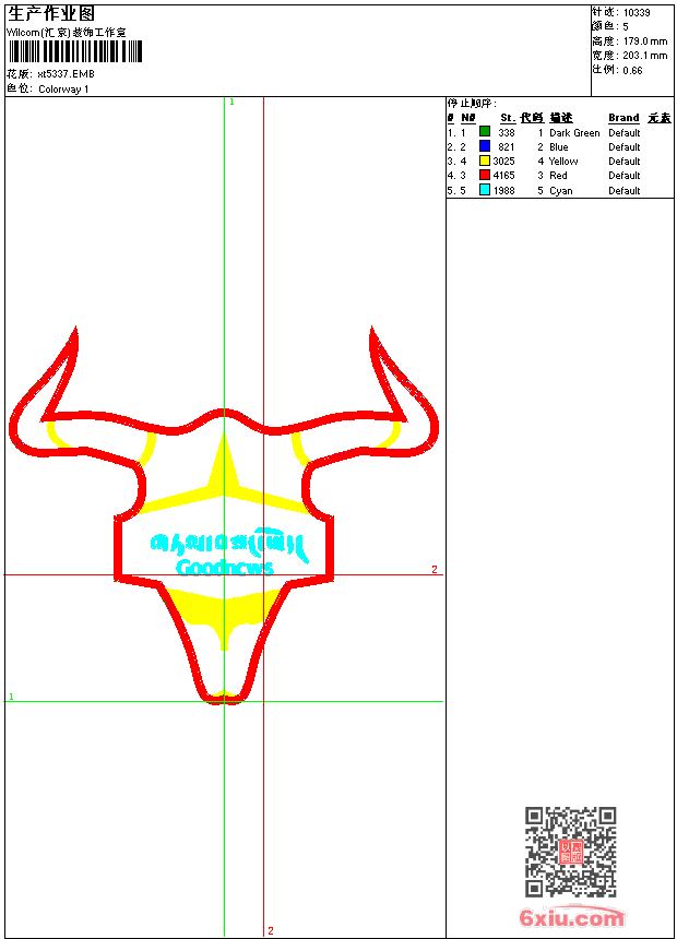 牛头 点此上传花版兑乐绣币/现金 emb花版参数: 大小:63.50 KB / 尺寸:203*179[毫米] / 针数:10339针 / 线色:5 / 格式:emb / 版本:9 版带文件需绣花软件方可打开,可配色打印导出各种格式或直接上机绣。如无绣花软件可下载1:1模拟效果图。 PNG图片信息:大小:0.2(MB) /图宽*高:769x677(像素) emb下载 1:1图下载 关闭 相似花版: 手指佛绣 卡通驴动物 佛绣 牛头 手指 手指 小鸟 靓花 连衣裙 抽象的满幅雕孔后背 蝴蝶 小和尚荷花中国风旗袍 靓花 领子 衣领 领子 靓花 鸟语花香 梅花 中国风花盆荷花 上一个花样:中国古典吉祥 下一个花样:手指佛绣