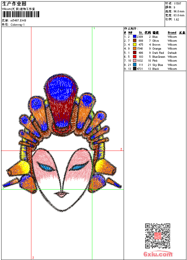 京剧脸谱 点此上传花版兑乐绣币/现金 emb花版参数: 大小:94.50 KB / 尺寸:83*96[毫米] / 针数:11597针 / 线色:9 / 格式:emb / 版本:9 版带文件需绣花软件方可打开,可配色打印导出各种格式或直接上机绣。如无绣花软件可下载1:1模拟效果图。 PNG图片信息:大小:0.1(MB) /图宽*高:314x364(像素) emb下载 1:1图下载 关闭 相似花版: 京剧脸谱 京剧脸谱 龙 海盗 中国神话乌龟 中国神话龙怪兽独角兽 喷火龙 中国神话怪兽 西游记孙悟空 中国神话麒麟 凤凰 老虎头 魔术面积 面具 豹子头 老虎头 猫头鹰狐狸 美女 猫头鹰 蝴蝶 上一个花样:仙鹤丹顶鹤 下一个花样:京剧脸谱